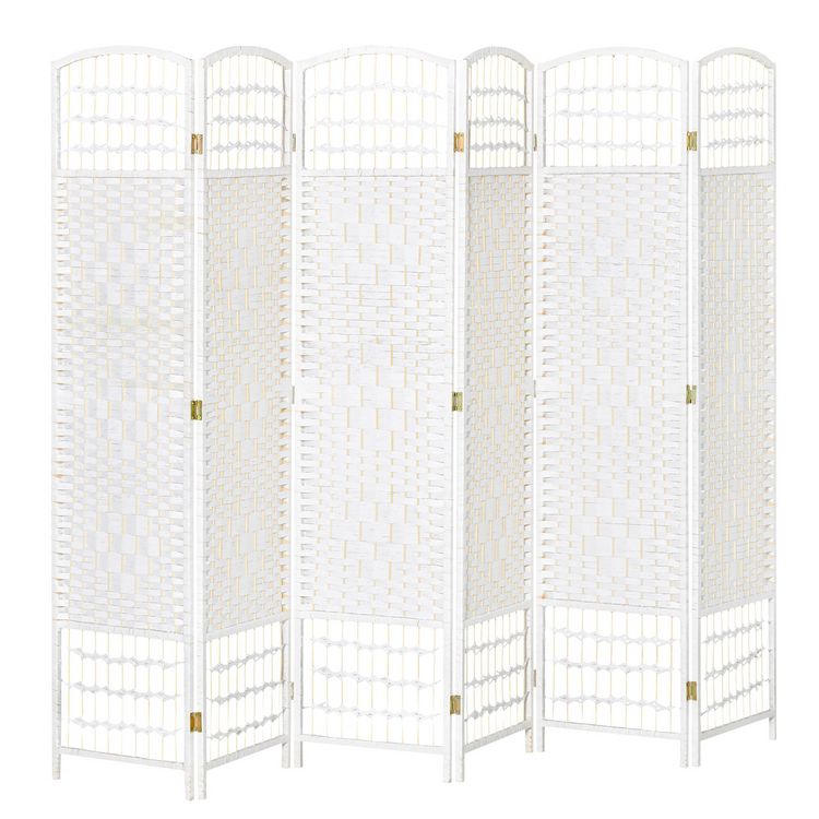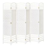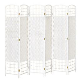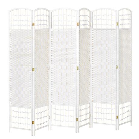 Paravent intérieur 6 panneaux pliables séparateur de pièce bois de peuplier bambou fibres de papier tressée blanc paille