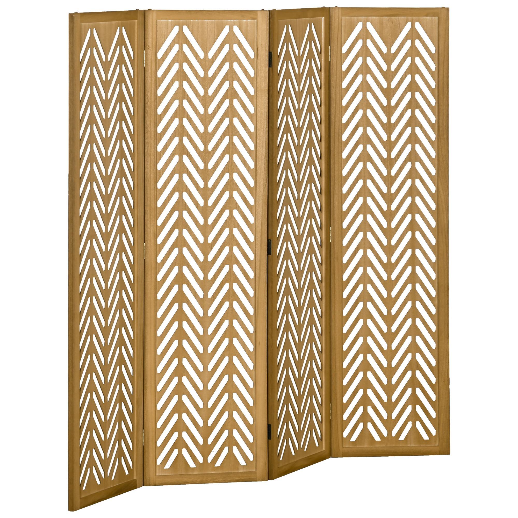 Paravent intérieur ajouré 4 panneaux pliables séparateur de pièce bois de paulownia verni