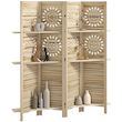Paravent intérieur bois naturel 4 panneaux 3 étagères séparateur de pièce pliable 160 x 170 cm