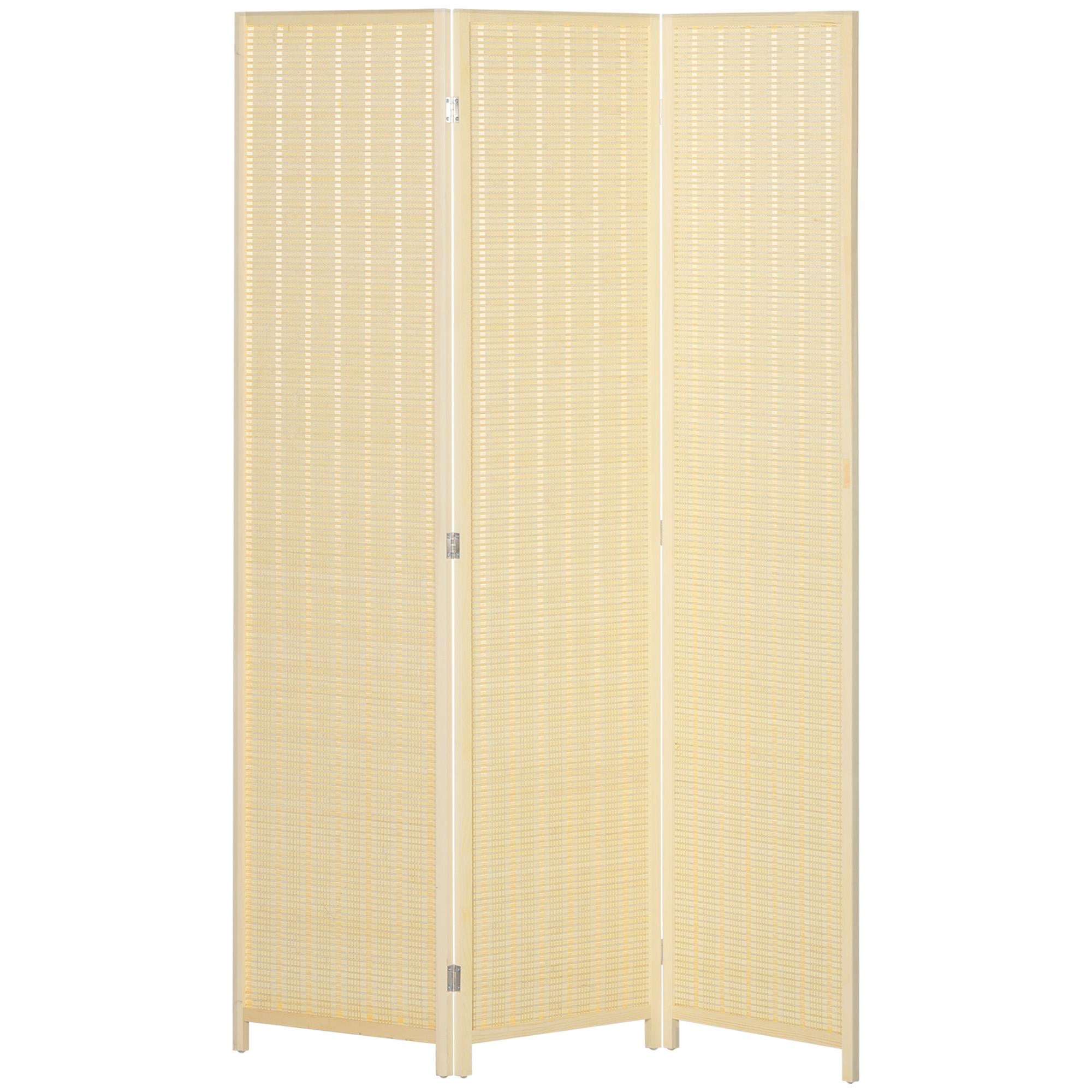 - Cloison de séparation intérieur 3 panneaux style naturel avec panneaux tressés en fibre de bambou coloris bois naturel