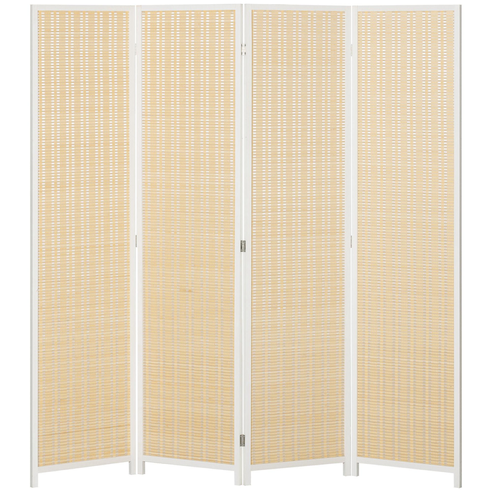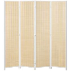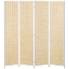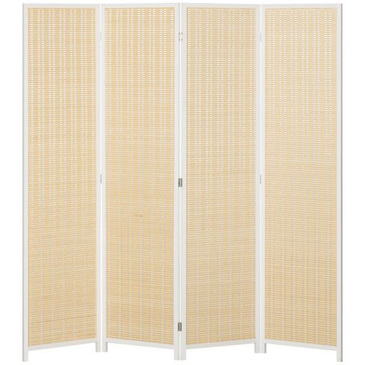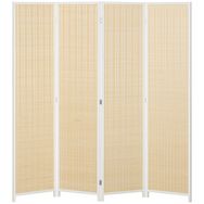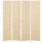 Paravent intérieur séparateur de pièce pliable 4 panneaux dim. 180L x 180H cm bois pin bambou coton