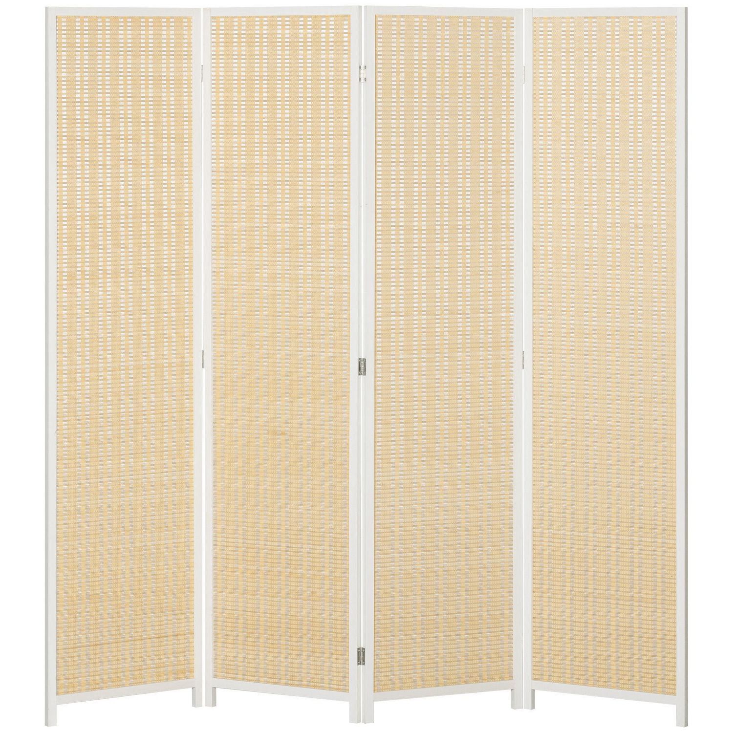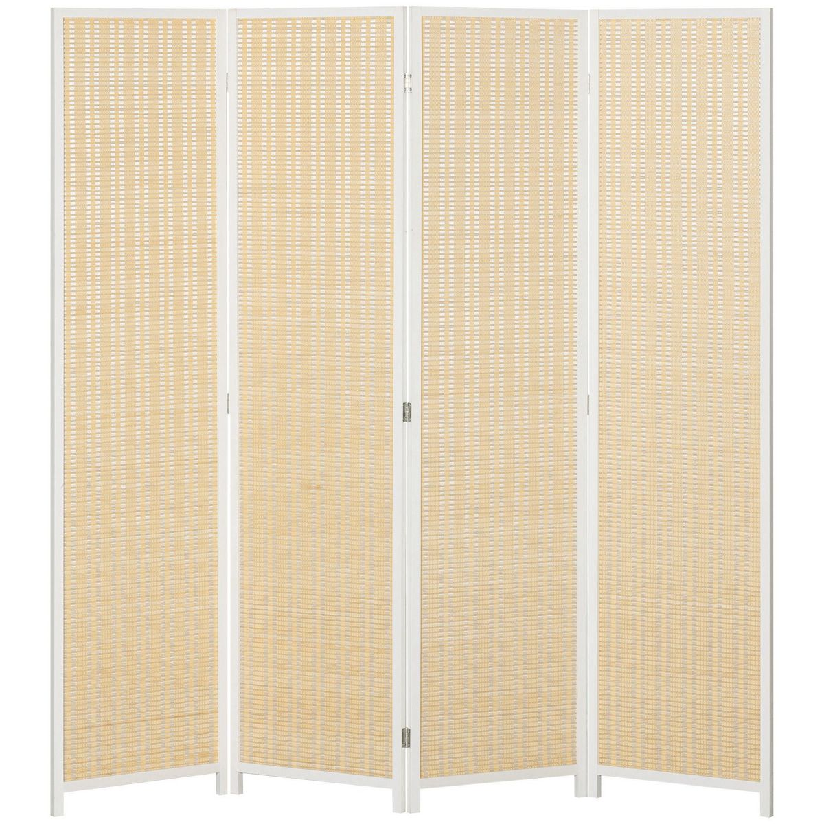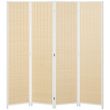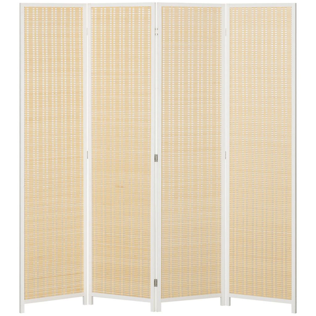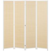 Paravent intérieur séparateur de pièce pliable 4 panneaux dim. 180L x 180H cm bois pin bambou coton blanc