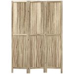 Paravent séparateur de pièce 3 panneaux pliables dim. 120L x 170H cm bois de pawlonia