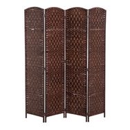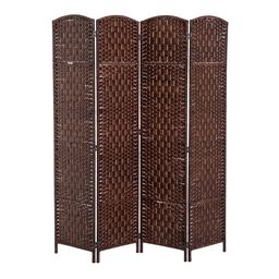 Paravent séparateur de pièce pliable 4 panneaux dim. 180L x 180H cm bois osier tressé