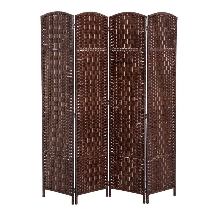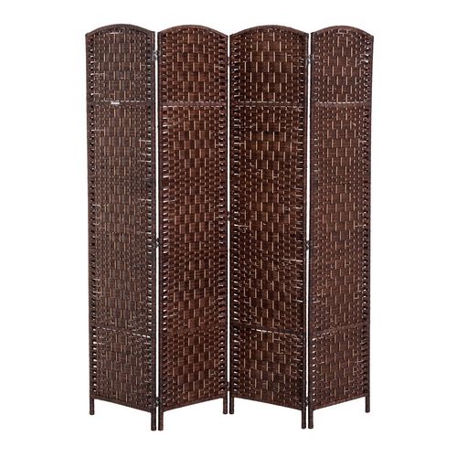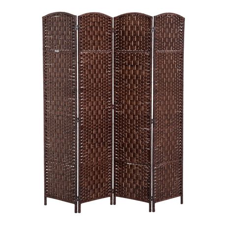 - Séparateur de pièce pliable 4 panneaux style naturel avec panneaux tressés coloris marron