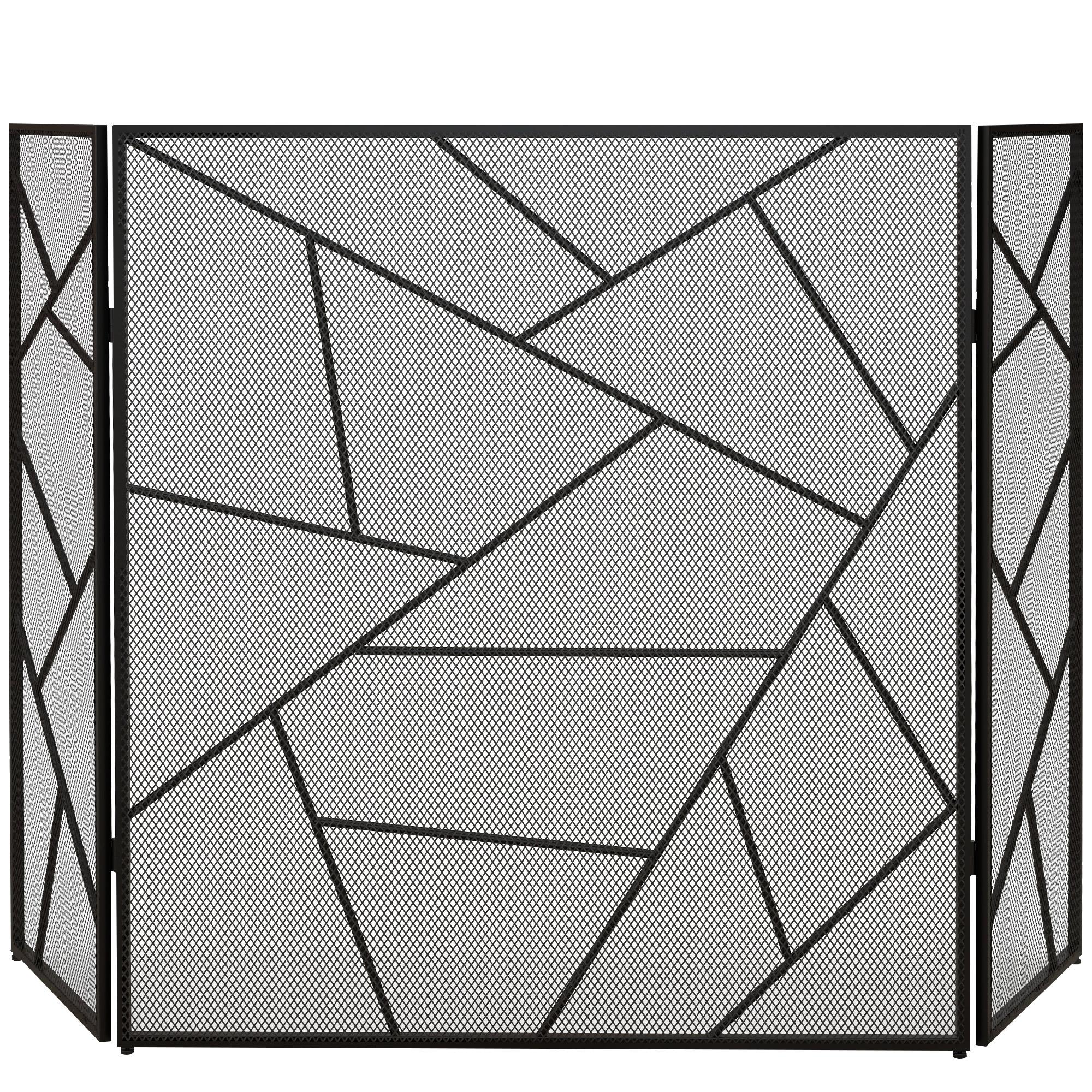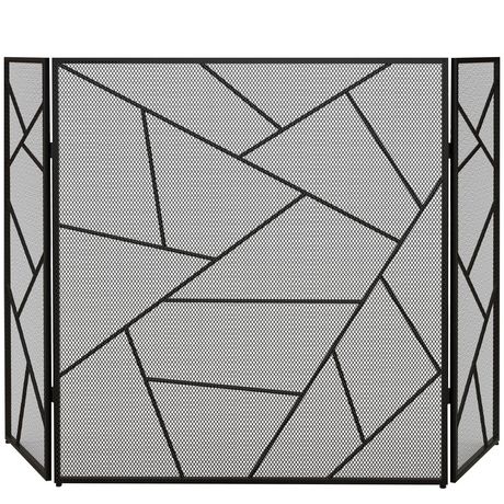Rendez votre cheminée élégante et sûre avec l'écran HOMCOM. Motif géométrique, protection contre les étincelles, trois panneaux pliables en acier pour stabilité et rangement facile. Idéal pour soirées chaleureuses.Caractéristiques :- Cette protection pour cheminée à motif géométrique élégant rehauss
