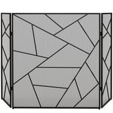 Pare-feu cheminée poêle design graphique - 3 volets pliables - dim. 135L x 1,2l x 85H cm - acier métal noir