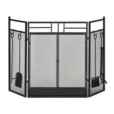 - Pare-feu serviteur de cheminée 2 en 1 avec 4 accessoires : pince, tisonnier, pelle et balai
