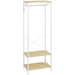 Penderie vestiaire d'entrée 2 étagères tringle acier blanc panneaux aspect bois clair