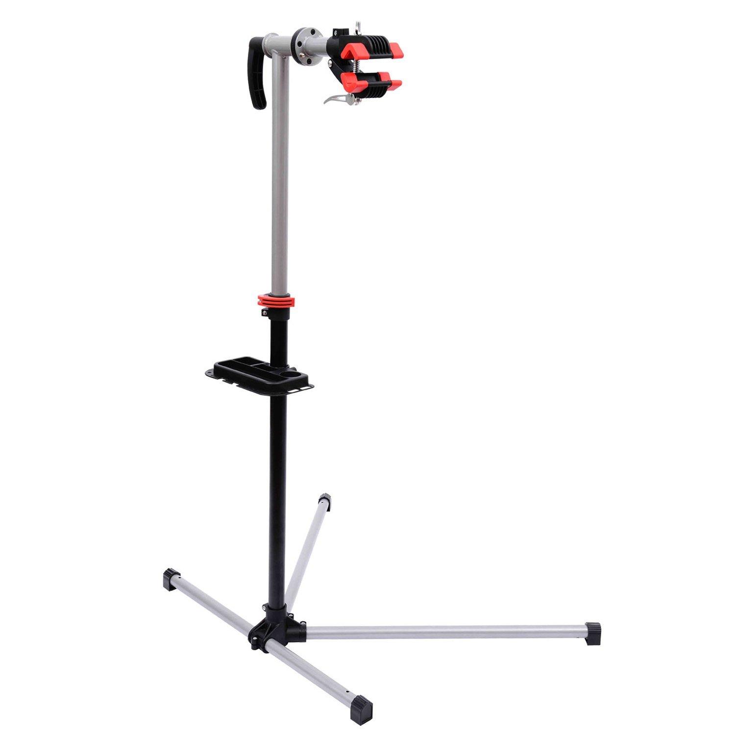 Ce support vélo vous sera d'une grande utilité pour la réparation, ajustement et entretien de votre cycle. Pivotant a 360 degrés et de hauteur réglable, vous n'aurez plus à vous pencher dans des positions inconfortables lorsque vous vous occuperez de votre vélo. Egalement équipe d'une tablette suppo