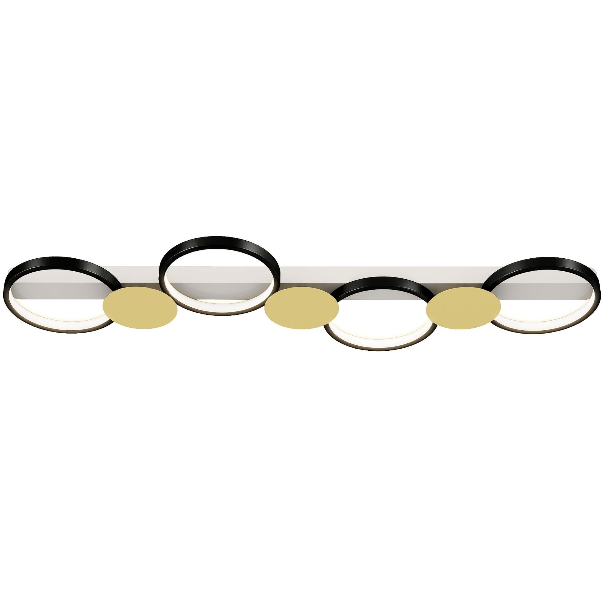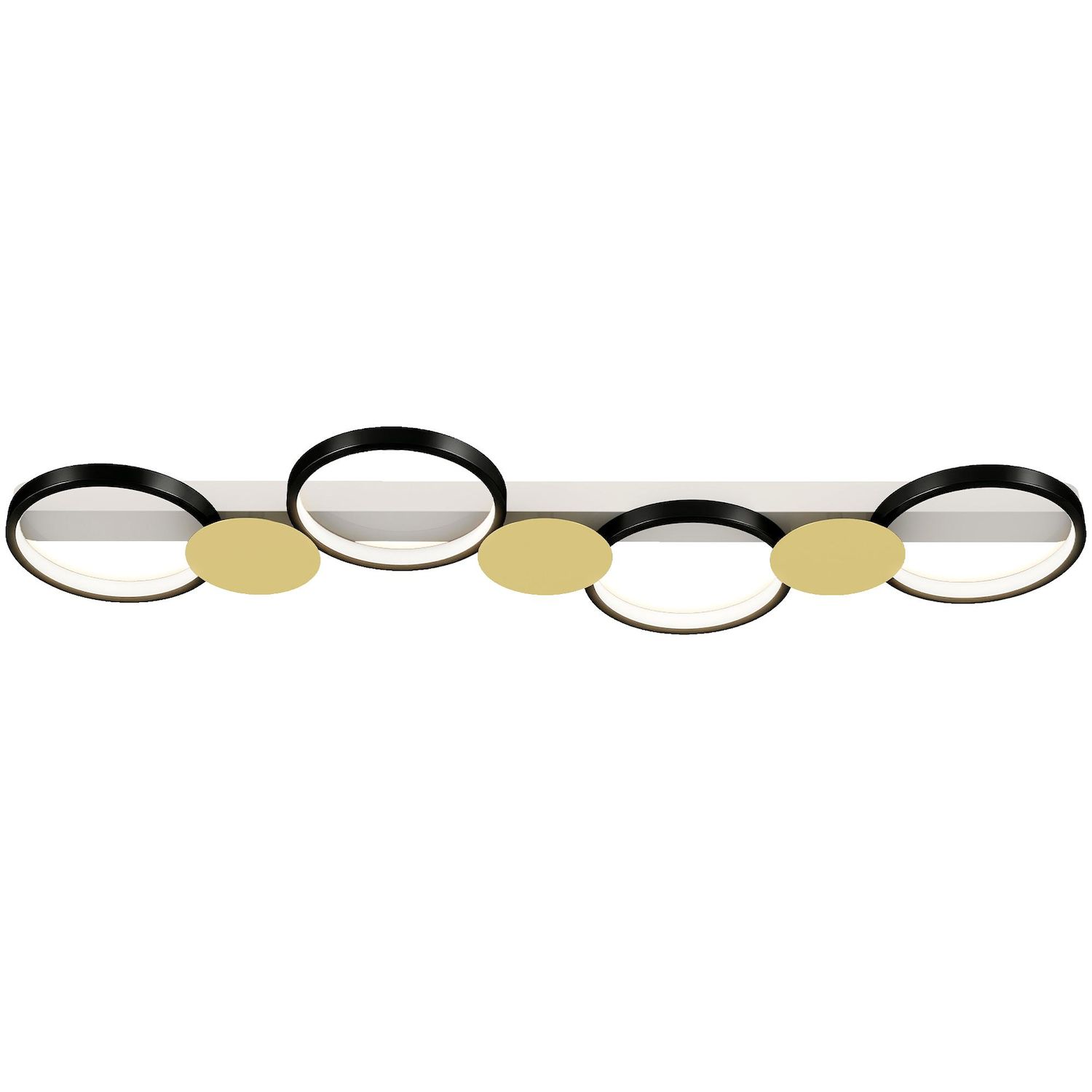 - Plafonnier LED au design moderne avec quatre anneaux noirs et des accents dorés qui rehaussent l'élégance de votre pièce