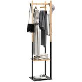 Portant pour vêtements en bambou, Porte-manteau en Bois avec tringle, étagères, patère, 4 barres latérales dim. 46L x 28,5l x 153,5H cm