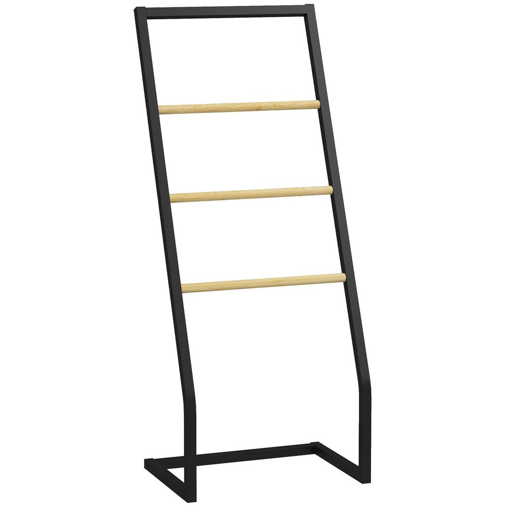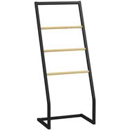 Porte-serviettes sur pieds en bambou et acier avec 4 barres support 40,5L x 28l x 98H cm - noir et naturel