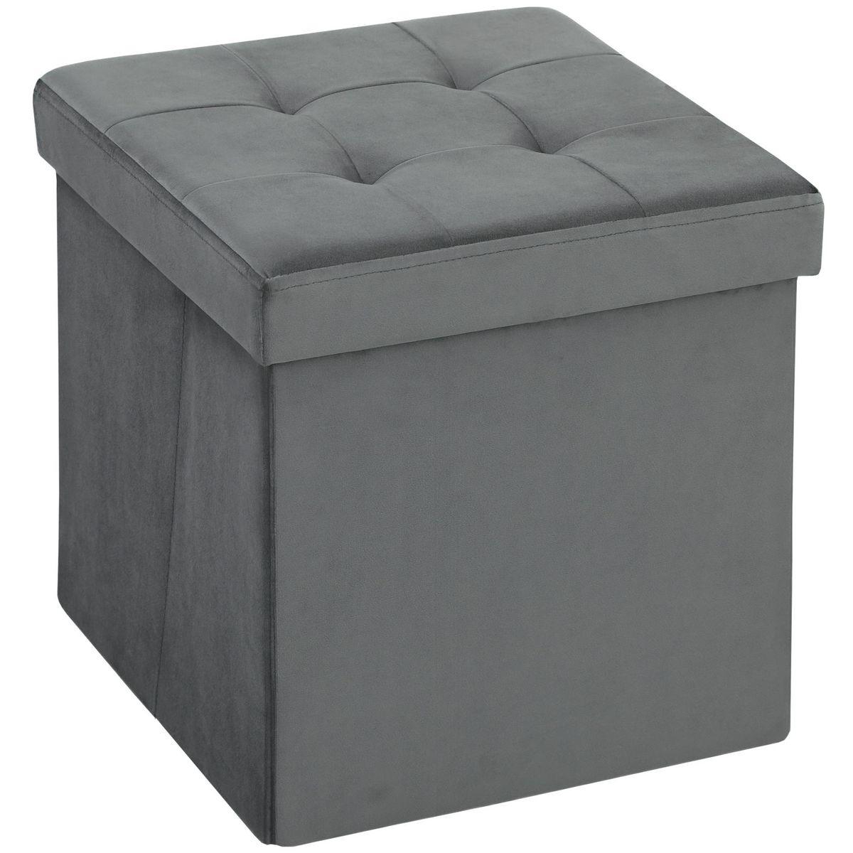 Pouf coffre velours effet capitonné pliable - pouf de rangement - dim. 38x38x38cm - gris