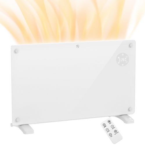 Radiateur à convection 1500W mural autoportant - affichage LED, timer 24h, thermostat, télécommande - verre blanc