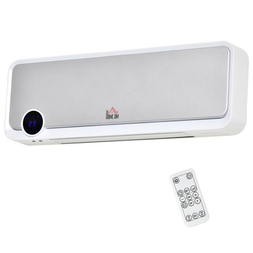 Radiateur mural soufflant oscillant 2000 W - chauffage céramique PTC - 3 niveaux de puissance - télécommande incluse blanc argenté