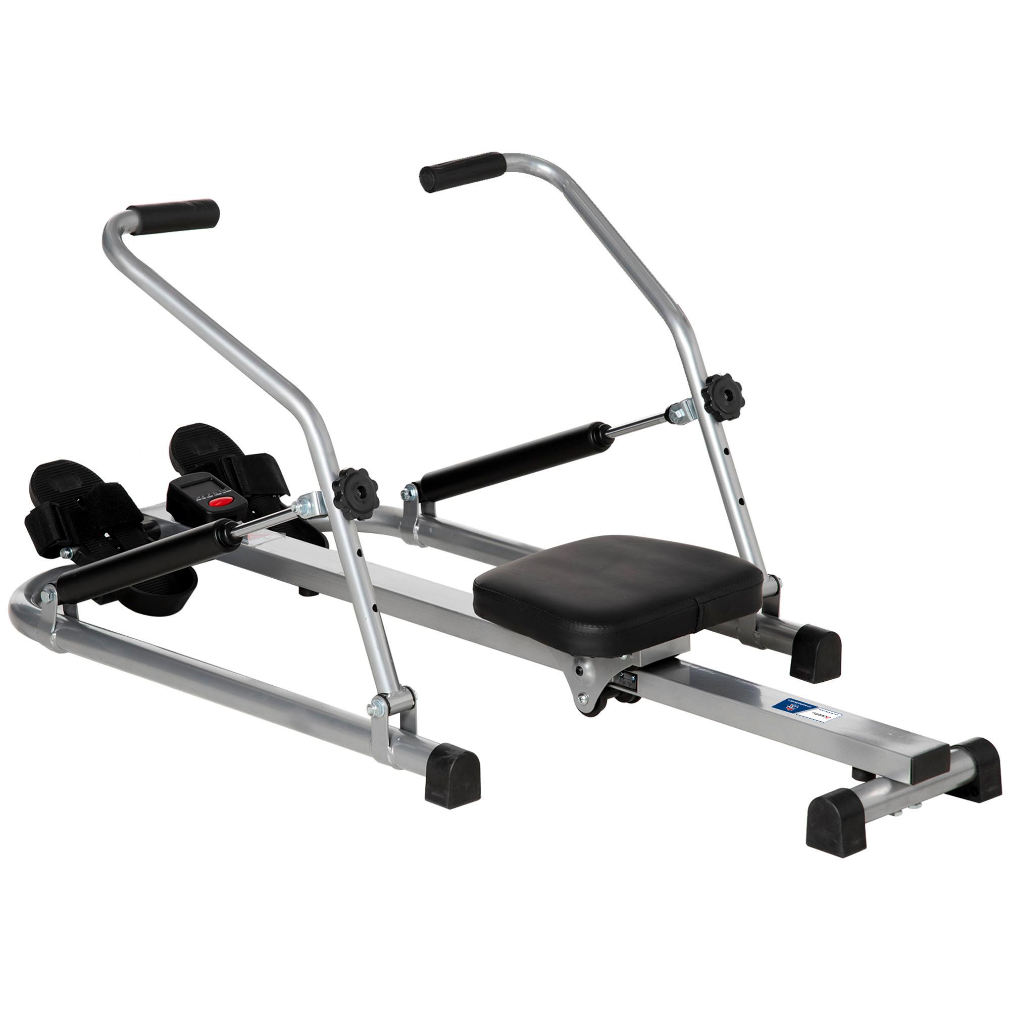 Rameur d'appartement pliable - collaboration Aosom.fr x FFHandball - résistance 3 niv. écran LCD multifonction - acier ABS noir gris