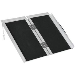 Cette rampe de fauteuil roulant vous facilitera grandement la vie au quotidien ! Alliant légèreté et robustesse grâce à sa fabrication en alliage d'aluminium et à sa fonction pliante, vous pourrez facilement l'utiliser où vous en avez besoin : la rampe se porte comme une valise à l'aide de sa poignée. Afin de vous garantir une sécurité optimale, sa surface est antidérapante et ses bordures sont surélevées de 5 cm environ. N'hésitez plus, optez pour cette rampe de fauteuil roulant.