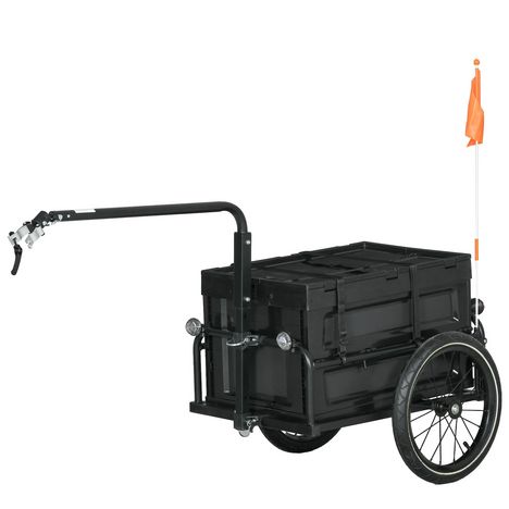 Remorque vélo cargo - coffre pliable amovible 65L - réflecteurs, drapeau - pneus 16'' acier PP noir