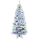 Sapin de Noël artificiel enneigé lumineux LED x 250 multicolore Ø 112 x 210H cm 829 branches vert blanc