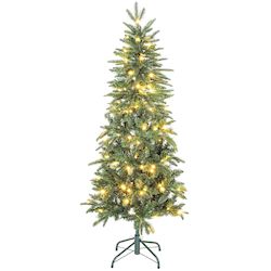 Illuminez les fêtes avec le sapin de Noël HOMCOM, 150 LED blanc chaud en 8 modes, de scintillant à fixe. Forme réaliste d'arbre alpin avec 431 pointes pour un look dense. Idéal pour petits espaces, il ajoute un charme naturel et une ambiance festive à tout intérieur.