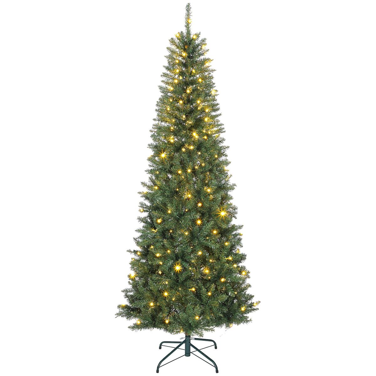 Sapin de Noël artificiel LED x 350 blanc chaud ou multicolore 9 modes H.210 cm 1273 branches support vert