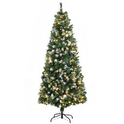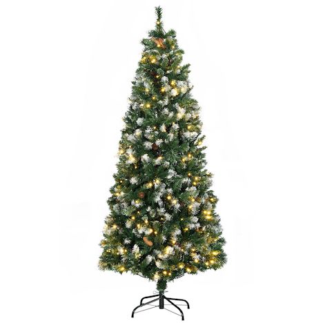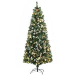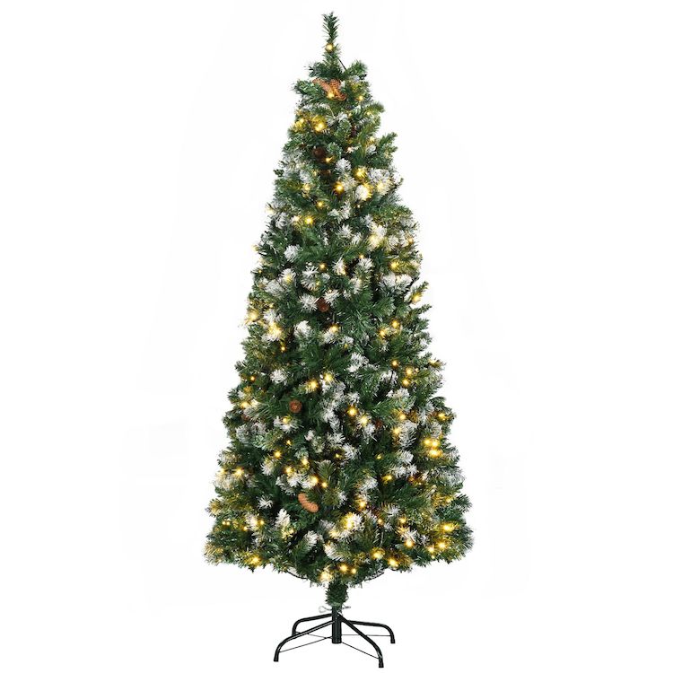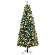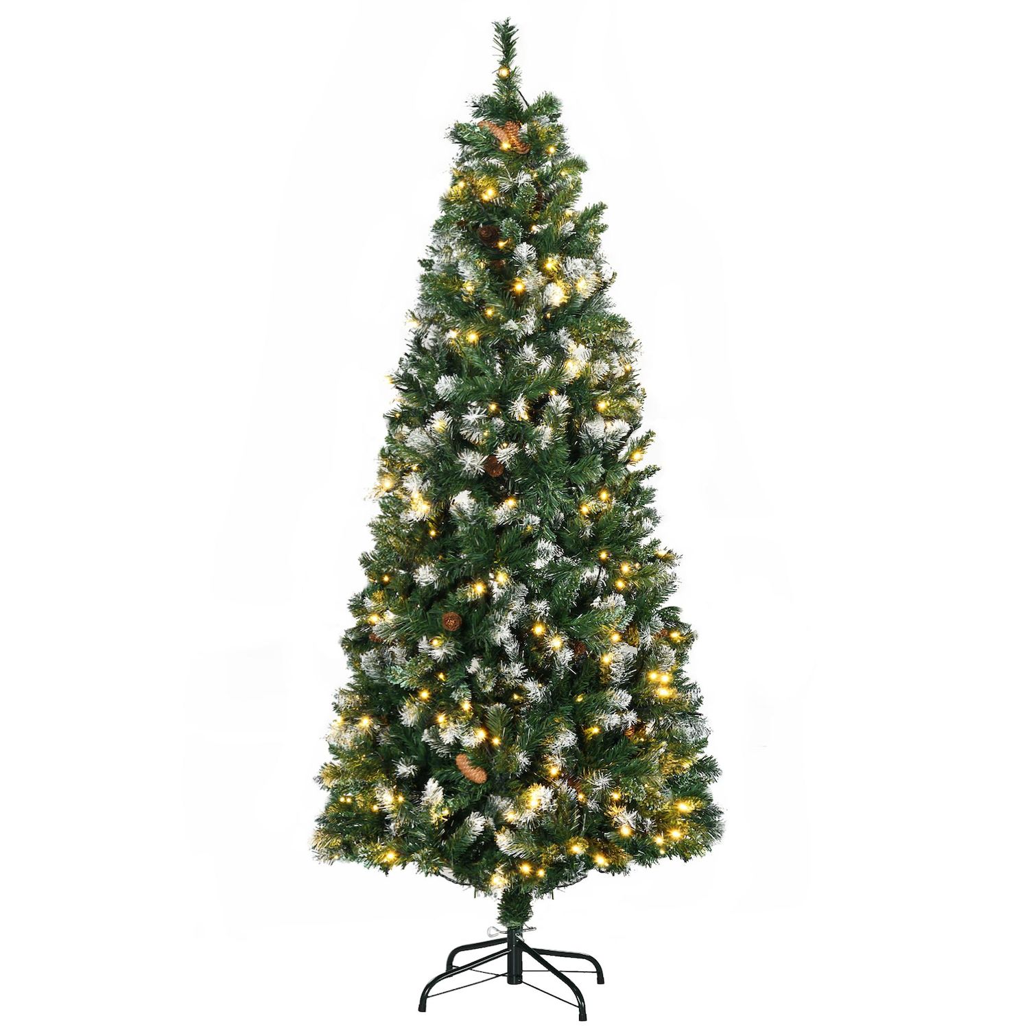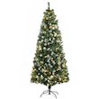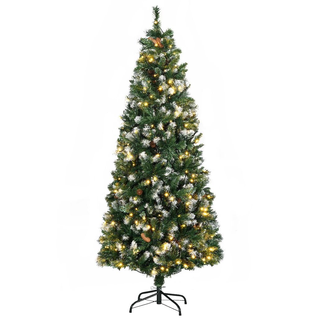 Sapin de Noël artificiel lumineux LED x 250 blanc chaud 30 pommes de pin H. 180 cm 703 branches vert effet neige