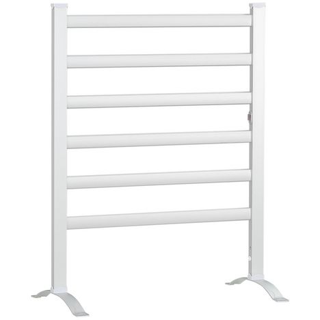 Sèche-serviettes électrique sur pied 140 W - radiateur porte-serviettes 6 barres - mural ou sur pied - H. 69 cm - alu.