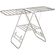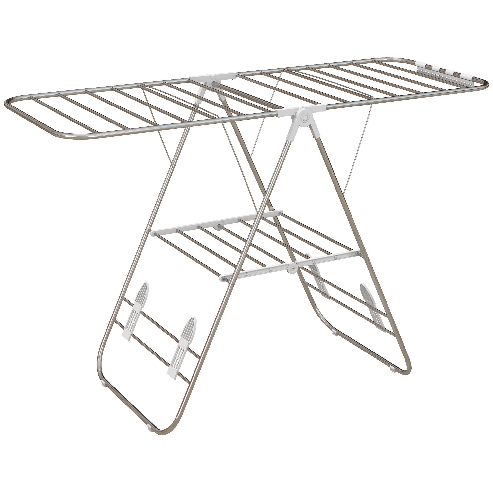 Séchoir à linge pliable sur pied - étendoir 2 niveaux ajustables - acier PP blanc