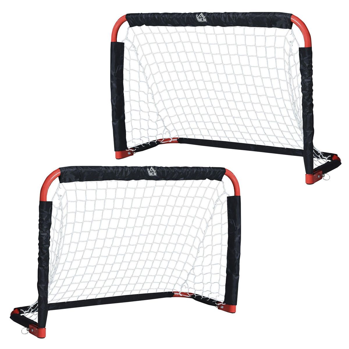Set de 2 mini cages de football pliables avec filet - dim. 90L x 36l x 60H cm - métal époxy rouge oxford noir