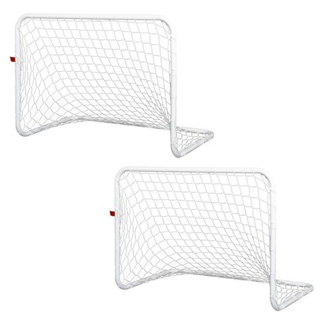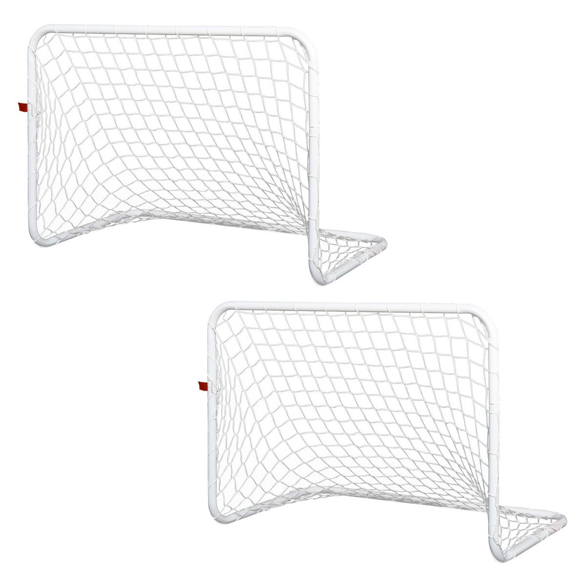 Set de 2 mini cages de football pour enfant - ballon, pompe, piquets inclus - 78L x 46l x 56H cm - métal blanc