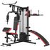 - Nombreux équipements : banc, module développé couché, butterfly, barre latissimus et traction, curler, flexion de jambes, bande de résistance et 10 contrepoids de 6,5 Kg chacun