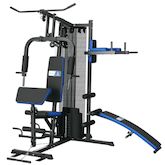 - Nombreux équipements : banc, module développé couché, butterfly, barre latissimus et traction, curler, flexion de jambes, bande de résistance et 10 contrepoids de 6,5 Kg chacun