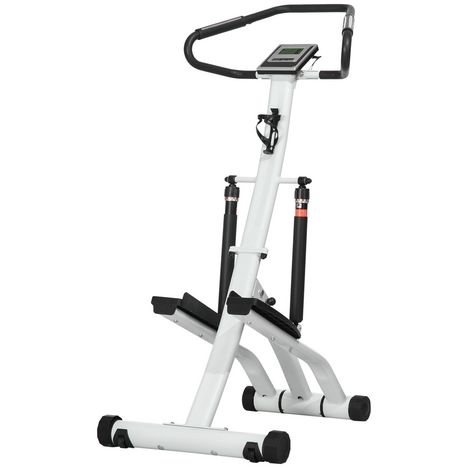 Stepper fitness pliable réglable - stepper avec guidon écran LCD multifonction porte-bouteille 2 roulettes acier blanc