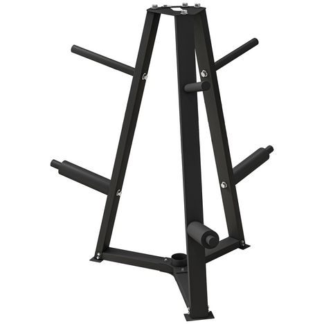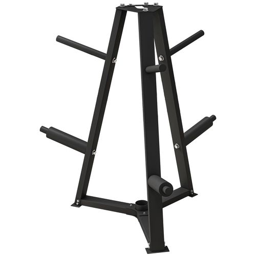 - Trois poteaux conviennent aux plaques avec un trou central de 5 cm, organisant les poids efficacement