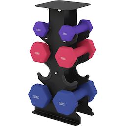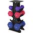 Support noir pour 6 haltères vinyles - 6 haltères incluses total 18 Kg - noir rose bleu violet