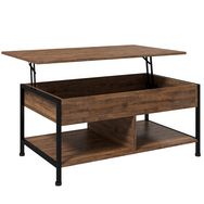 Table basse relevable - étagère inférieure, coffre de rangement - dim. 100L x 80l x 60H cm - aspect bois rustique noir