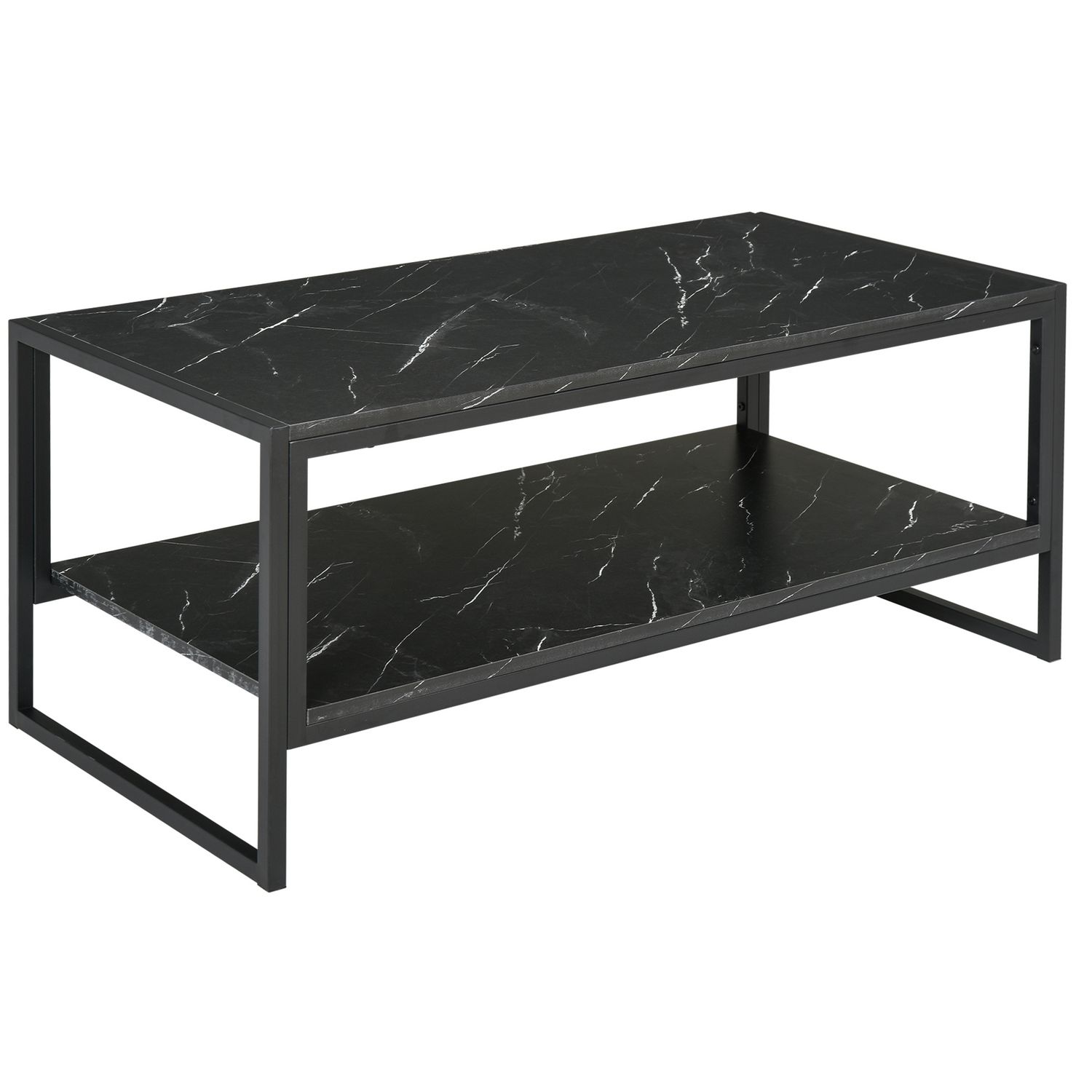 Table Basse Style Moderne avec 2 Étagères 106 x 50 x 47 cm Noir