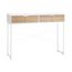 Table console industriel 2 tiroirs aspect bois de chêne sculpté motif à chevrons piètement métal blanc