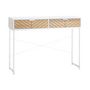 En savoir +Laissez-vous séduire par le design épuré industriel de cette splendide table console avec façades de placards aspect bois de chêne sculpté motif à chevrons. Ce meuble est équipé de 2 tiroirs coulissants afin de vous permettre de ranger vos clés, magazines, courriers, décorations, etc. Fabriqué en métal et panneaux de particules, cette console vous sera grandement pratique au quotidien.