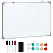 Tableau blanc aimanté magnétique dim. 90L x 60H cm nombreux accessoires inclus cadre aluminium