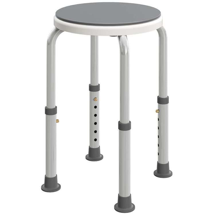Conçu pour aider dans la douche ou le bain, ce tabouret de bain HOMCOM est parfait pour les personnes âgées ou nécessitant une aide. En aluminium, ses pieds résistent à l'eau, assurent stabilité et supportent jusqu'à 135 kg. Réglable sur six niveaux, il a une assise rotative et des pieds antidérapan