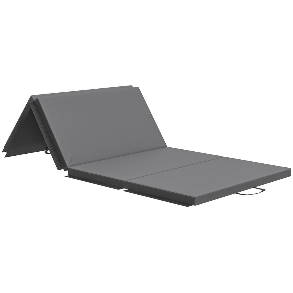 Tapis de gym yoga fitness pliable - poignée - revêtement synthétique - gris
