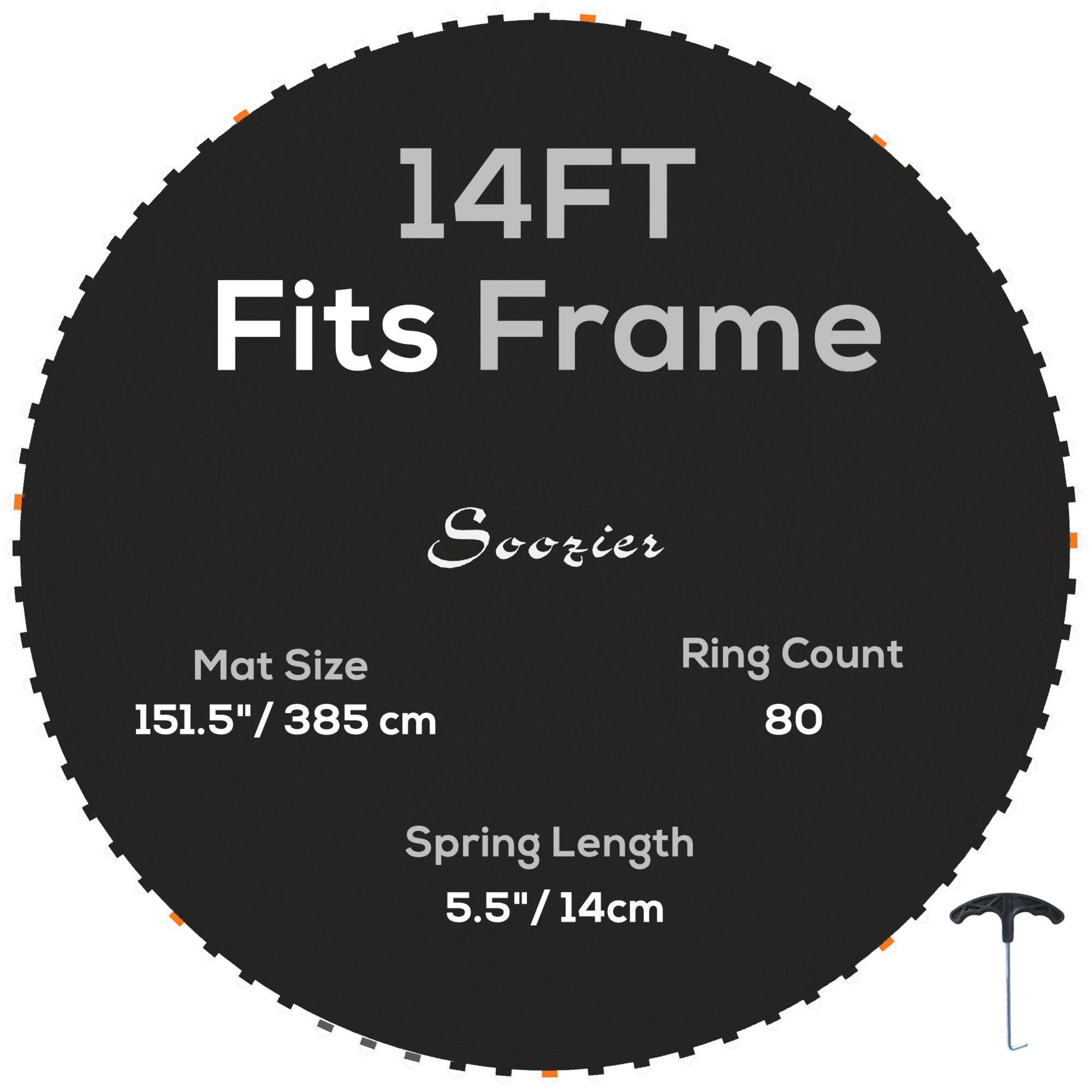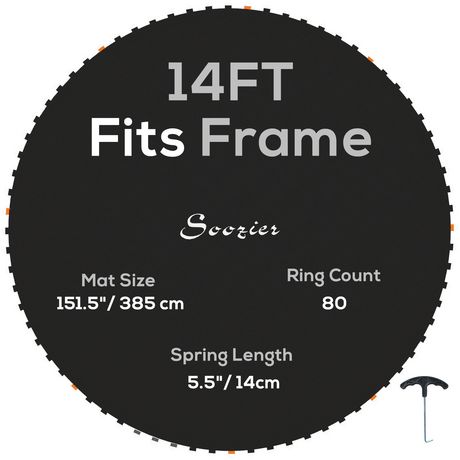 - Convient au trampoline rond de 14 pieds avec 80 anneaux en V, utilisant des ressorts de 14 cm