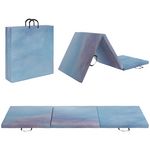 Tapis de sol gymnastique Fitness pliable portable rembourrage mousse 5 cm dim. 1,8L x 0,6l m revêtement synthétique bleu