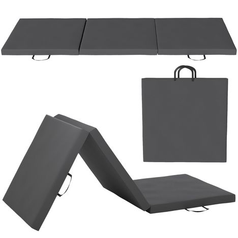 Tapis de sol gymnastique Fitness pliable portable rembourrage mousse 5 cm dim. 1,8L x 0,6l m revêtement synthétique gris