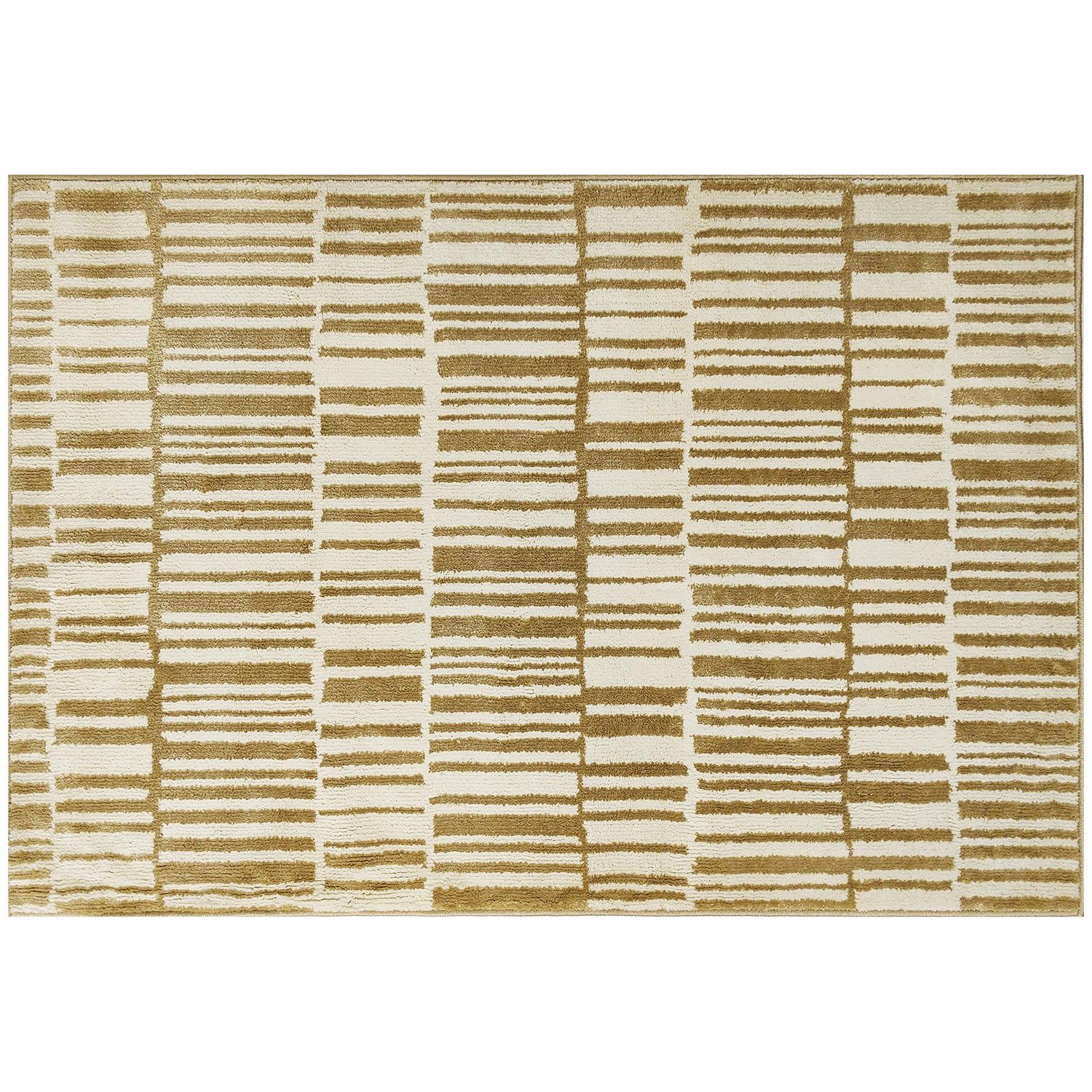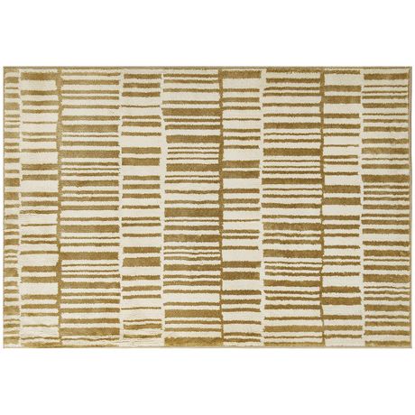 Tapis salon moderne poils courts style graphique beige moutarde 200 x 140 cm