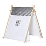Tente teepee indien enfant motif étoiles - dim. 1,3L x 1,11I x 1,36H m - 2 portes refermables, fenêtre - structure bois, toile polyester coton gris blanc