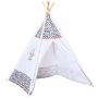 Tente teepee indien enfant style graphique - dim. 1,2L x 1,2I x 1,55H m - porte refermable, fenêtre - structure bois, toile polyester coton blanc multicolore