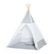 Tente teepee indien enfant style graphique - dim. 1,2L x 1,2I x 1,55H m - porte refermable, fenêtre, tapis, coussin, sac transport inclus - structure bois, toile polyester coton gris blanc